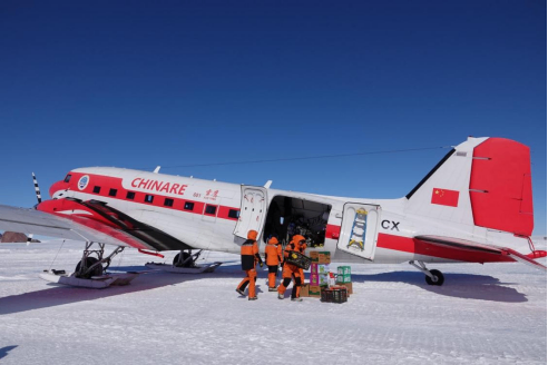 Xueying 601 transports supplies and scientific equipment. (PHOTO: XINHUA)On December 17, Xueying 601, also known as Snow Eagle 601, China's first polar fixed-wing plane, carried out aerial surveys